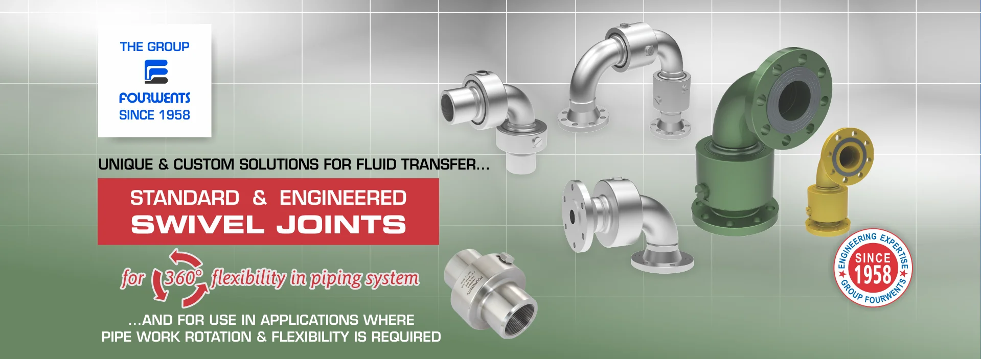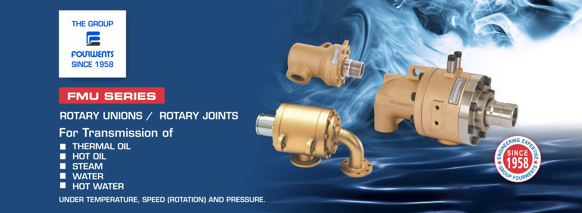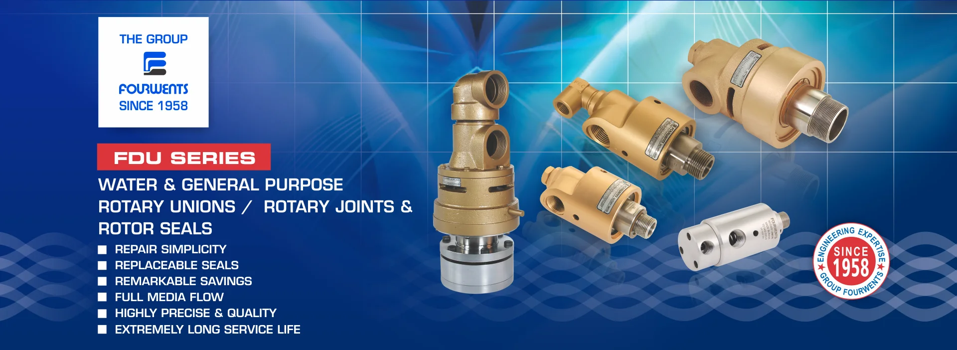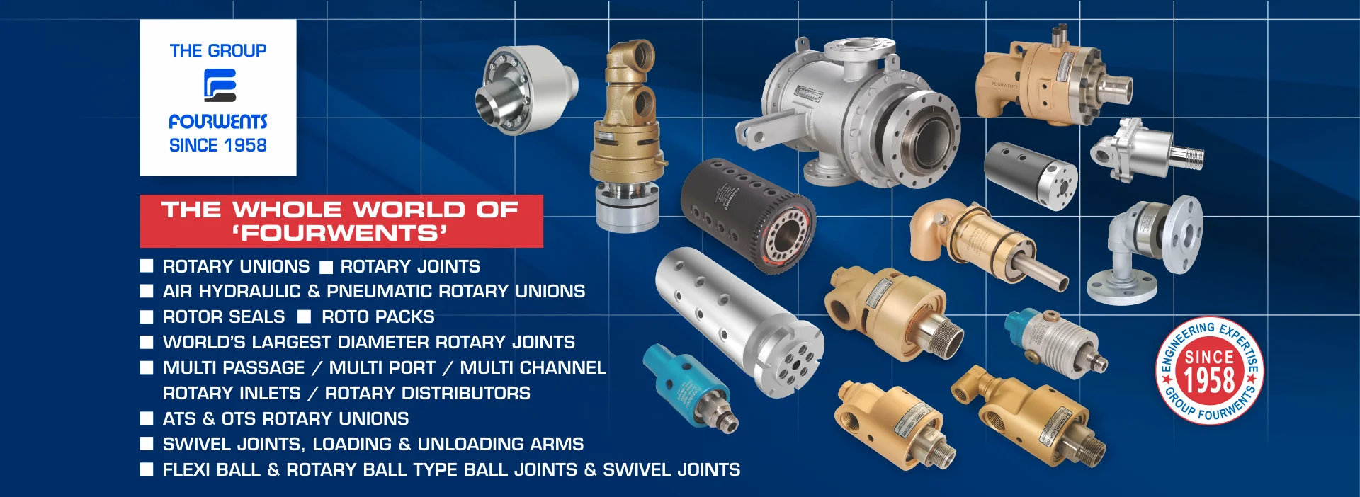 ‘FOURWENTS’ OFFERS A COMPLETE RANGE OF ROTARY UNIONS / ROTARY JOINTS / WORLDS LARGEST DIA METER ROTARY JOINTS ( SIZE 4” INCH TO 20” INCH DIA METER), ATS & OTS ROTARY UNIONS, ROTOR SEALS, ROTO PACKS, FLEXI BALL & ROTARY BALL TYPE BALL JOINTS, SWIVEL JOINTS AND SEALING SYSTEM TO SUIT INDIVIDUAL CUSTOMER SPECIFICATIONS.
