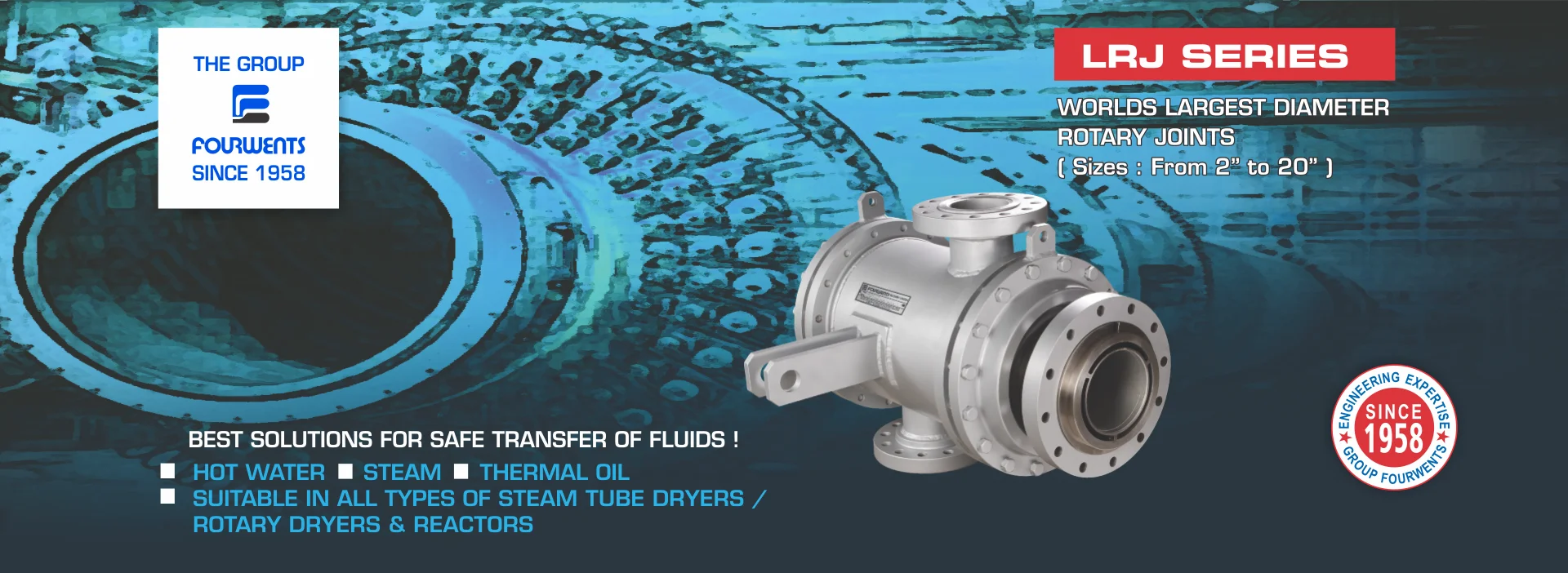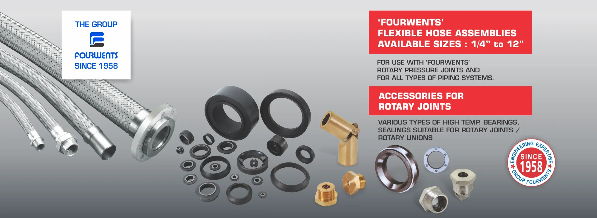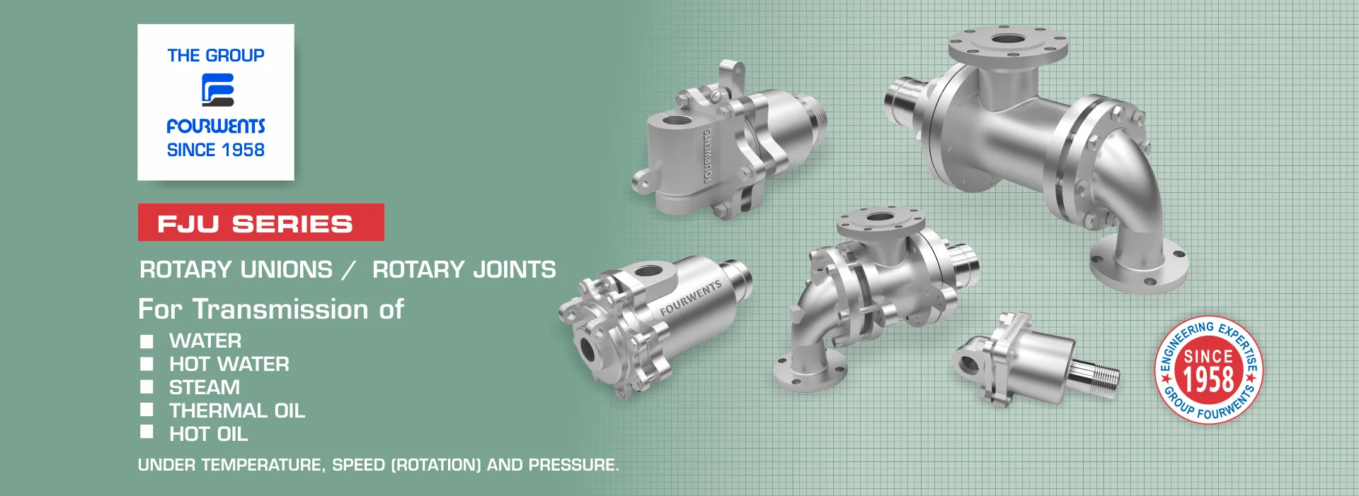 ‘FOURWENTS’ OFFERS A COMPLETE RANGE OF ROTARY UNIONS / ROTARY JOINTS / WORLDS LARGEST DIA METER ROTARY JOINTS ( SIZE 4” INCH TO 20” INCH DIA METER), ATS & OTS ROTARY UNIONS, ROTOR SEALS, ROTO PACKS, FLEXI BALL & ROTARY BALL TYPE BALL JOINTS, SWIVEL JOINTS AND SEALING SYSTEM TO SUIT INDIVIDUAL CUSTOMER SPECIFICATIONS.