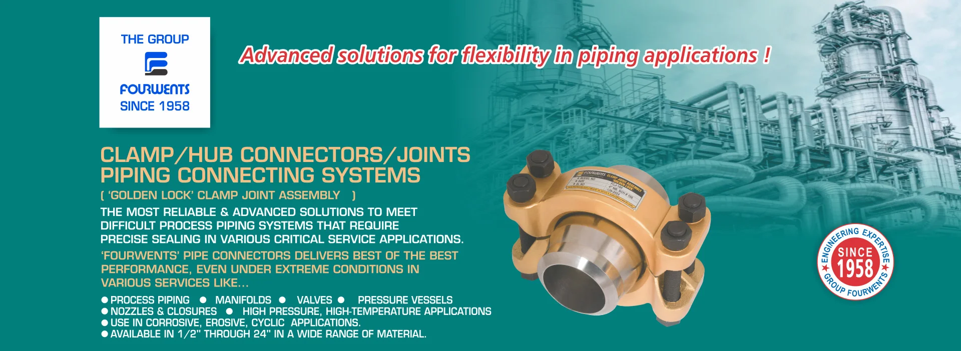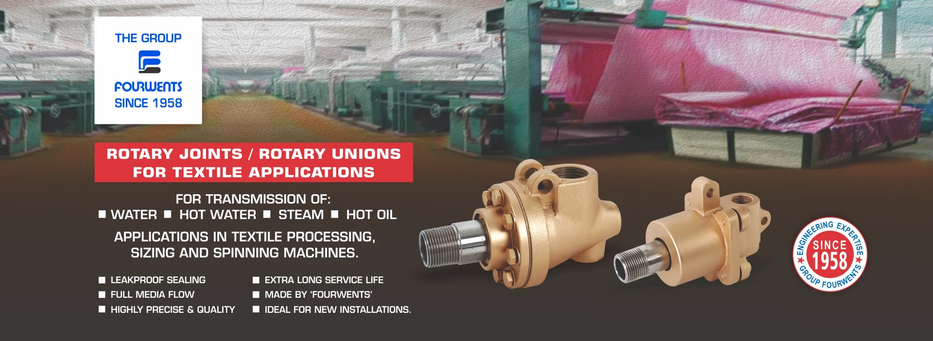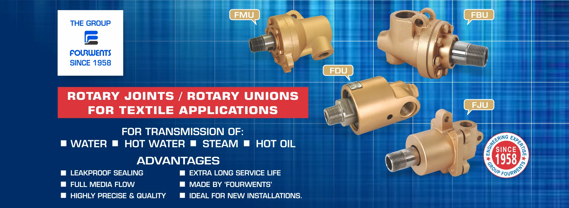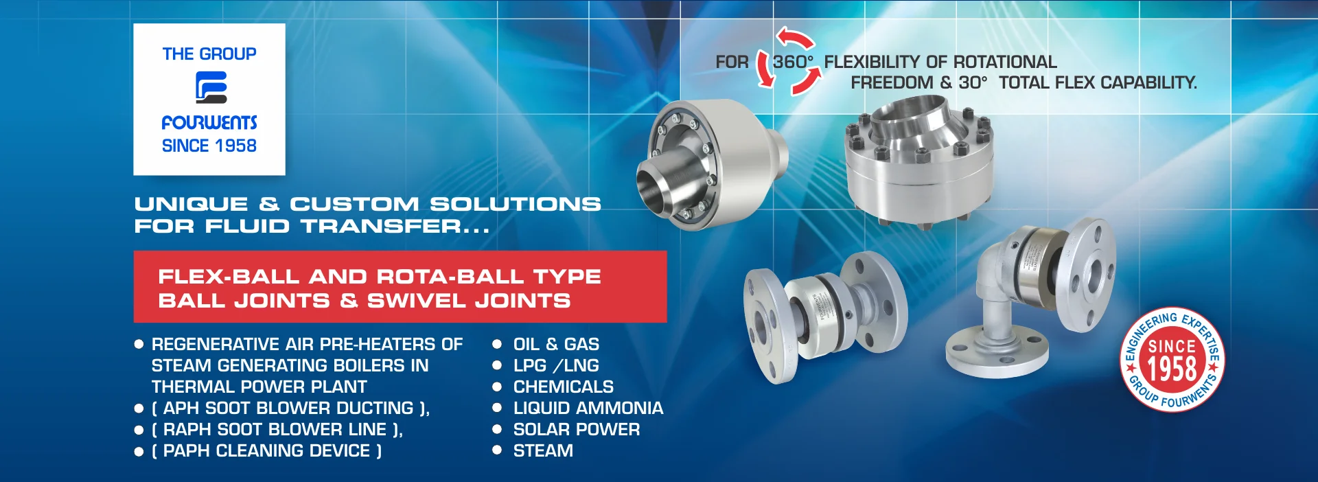 ‘FOURWENTS’ OFFERS A COMPLETE RANGE OF ROTARY UNIONS / ROTARY JOINTS / WORLDS LARGEST DIA METER ROTARY JOINTS ( SIZE 4” INCH TO 20” INCH DIA METER), ATS & OTS ROTARY UNIONS, ROTOR SEALS, ROTO PACKS, FLEXI BALL & ROTARY BALL TYPE BALL JOINTS, SWIVEL JOINTS AND SEALING SYSTEM TO SUIT INDIVIDUAL CUSTOMER SPECIFICATIONS.