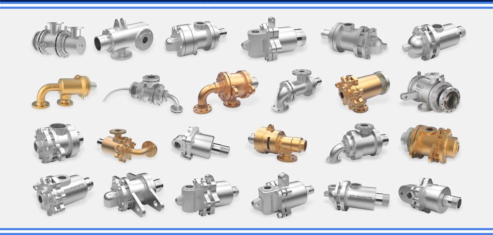 AT 'FOURWENTS', WE FEEL EVERY APPLICATION DESERVES ITS OWN OPTIMAL SOLUTION. THAT'S WHY WE HAVE DEVELOPED THE WIDEST LINE OF ROTARY JOINTS & UNIONS AND SYPHONS AVAILABLE. 'FOURWENTS' PRODUCTS MEET ALMOST ANY NEED WHATEVER THE PROCESS, SPEED, MEDIUM, PRESSURES, TEMPERATURES OR OTHER APPLICATIONS, CONDITIONS. WE OFFER SELF-SUPPORTED, ROD-SUPPORTED AND BRACKET MOUNTED ROTARY UNIONS/ROTARY JOINTS FOR HANDLING...